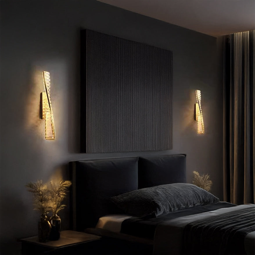 The Luxury Crystal Spiral Sconce Light features a gracefully twisted silhouette with faceted crystal panels that refract warm LED light, casting a rich, ambient glow across the room. Finished with a gold-toned base, this sculptural wall fixture adds a touch of modern elegance to bedrooms, living rooms, or hallways, delivering both atmosphere and artistry in a compact form.